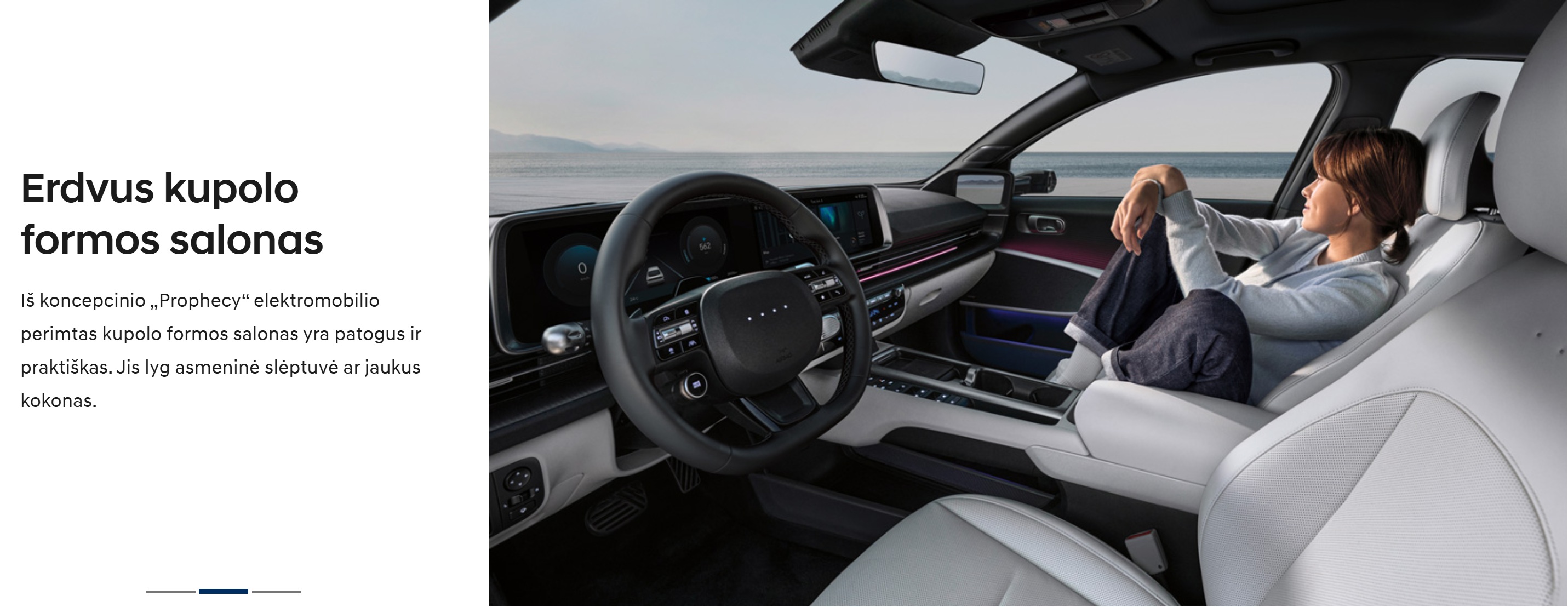Naujojo IONIQ 6 salone daug gerai apgalvotų vietų daiktams susidėti, įskaitant erdvią priekinę daiktadėžę keleivio pusėje.