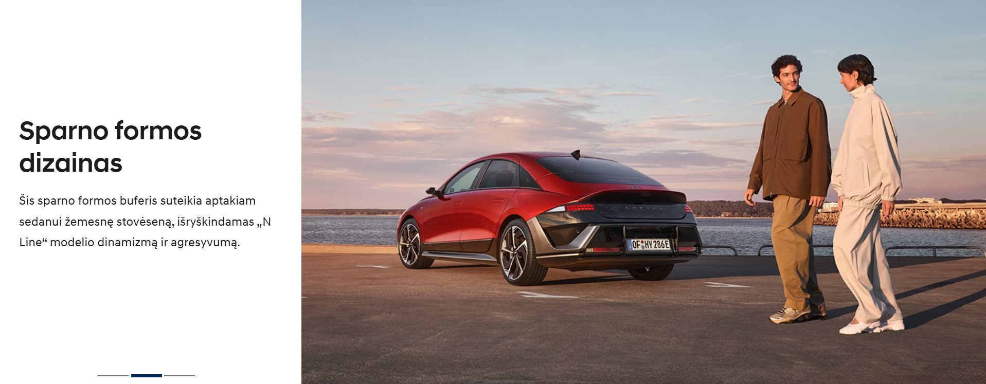 Greito ir galingo brolio – visiškai naujo „IONIQ 6 N“ – įkvėpti „Hyundai“ konstruktoriai sukūrė išskirtinį „IONIQ 6 N Line“ modelį, su sportinių automobilių dizaino elementais. Čia sportinė dvasia tobulai dera su tobula elegancija.
