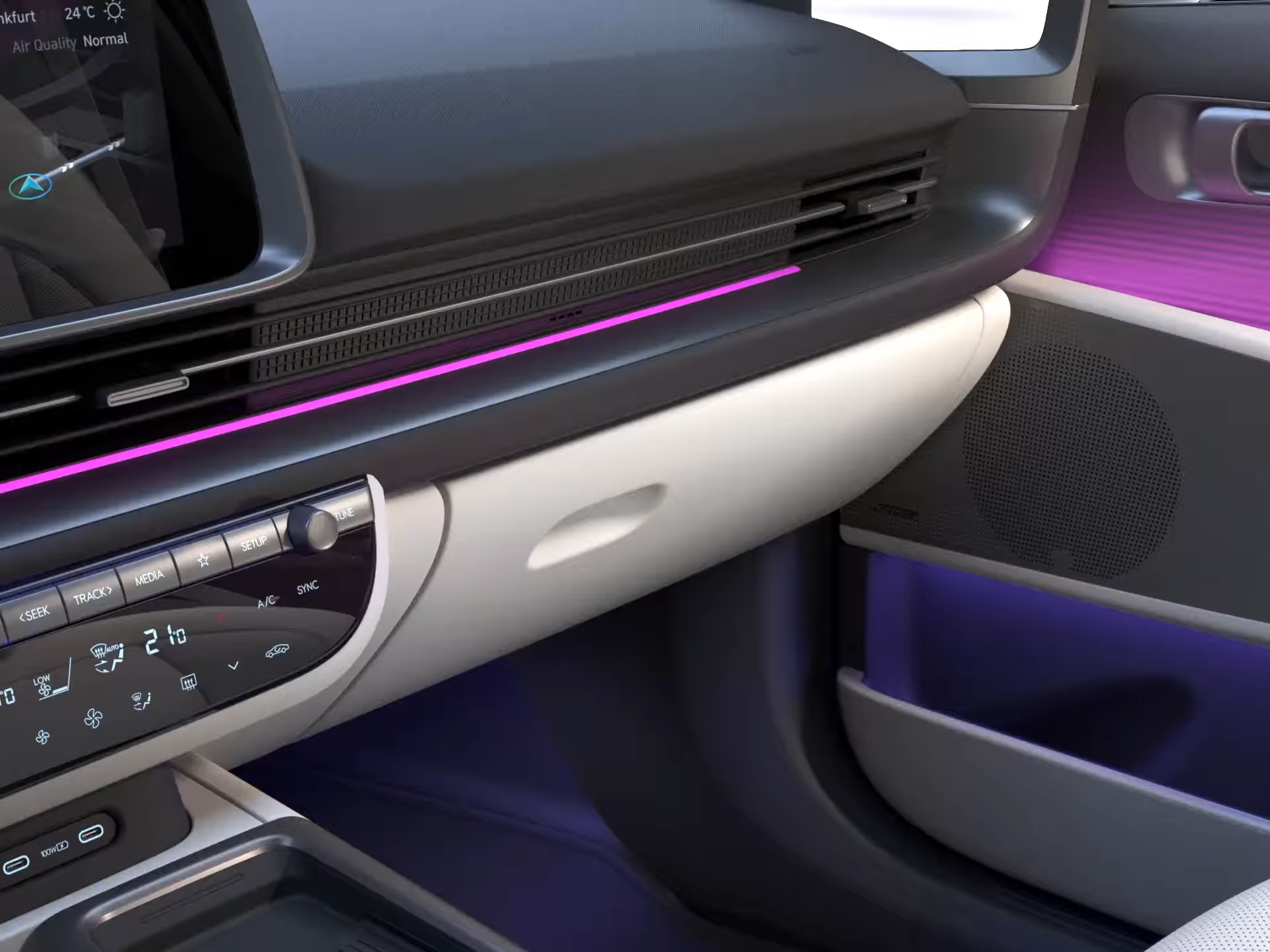 Interaktyvus, į greitį reaguojantis priekinių durų apšvietimas keičia ryškumą nuo 10 % važiuojant 30 km/h greičiu iki 100%, kai pasiekiamas 100 km/h greitis.