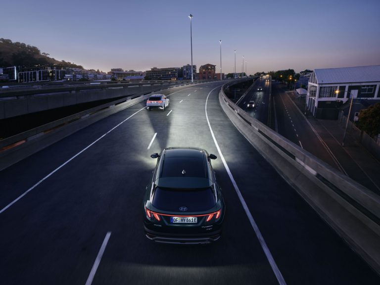 „TUCSON N Line“ turi unikalios formos priekines groteles ir kampuotą buferį. Šviesos diodų matricos technologija, kuri automatiškai keičia apšvietimą pagal kelio sąlygas, leidžia maksimaliai išnaudoti tolimąsias šviesas neakinant kitų vairuotojų ir užtikrina geriausią apšvietimo kokybę bei saugumą.